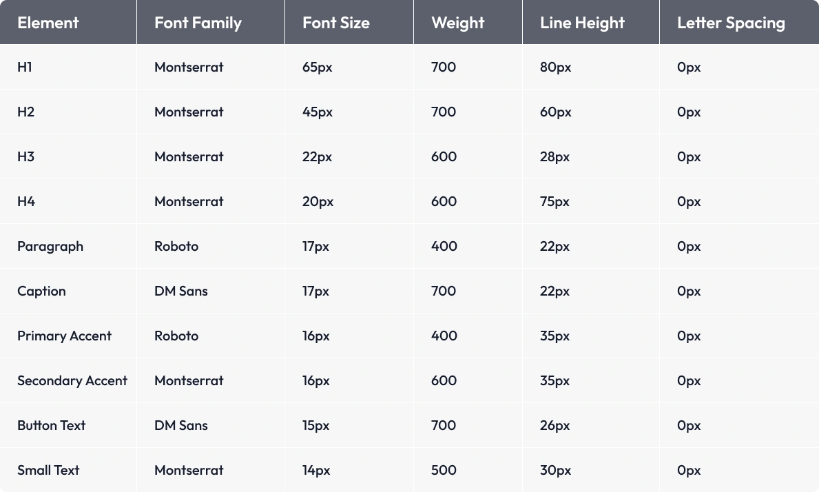 Font Family : Montserrat, Roboto, DM Sans